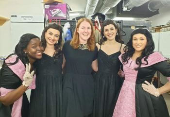 The awesome women on our UK tour (L-R): Samuelle Durojaiye (Marlena Madison), Daniella Agredo Piper (Maria Elena Holly), Kelly McMahon (Head of Wardrobe), Stephanie Cremona (Vi Petty), and Laura-Dene Perryman (Chantel Williams)