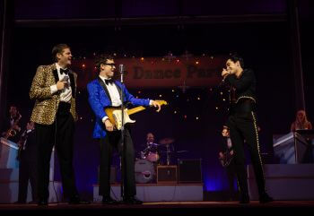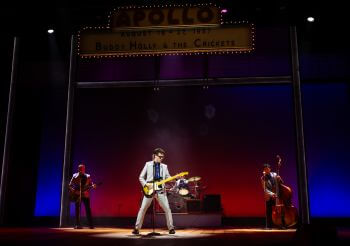 “Unlike other traditional musical productions that employ heard-but-not-seen pit orchestras to accompany the actors, Buddy — The Buddy Holly Story casts actor-musicians to perform all the music live on stage—at times even switching instruments depending on what role they’re playing.
