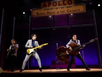 “Keith Andrews directs and choreographs the actors who perform the music live with the energy and movement of a rock and roll concert… Nothing can compare to the intimacy of a live onstage band and the musicianship of the central trio: Buddy Holly and The Crickets, with Will Riddle as Buddy Holly; Omar D. Brancato as Joe B. Maudlin; and Laura Leo Kelly as Jerry Allison. They are stunning as the heartbeat of this production… They are supported by an equally impressive ensemble cast of actor musicians doubling up on roles. Kudos to everyone.