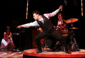 Matt McClure (Buddy Holly) and the cast of Buddy – The Buddy Holly Story at North Shore Music Theatre