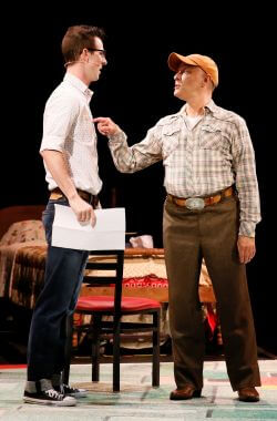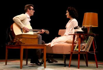 “With Buddy, the Crickets – upright bassist Joe B. Mauldin (played by Brian Russell Carey) and drummer Jerry Allison (Seth Eliser) – work out their songs as though we’re witnessing their creation. “Peggy Sue” begins as an a cappella rhumba called “Cindy Lou” — they end it with “cha cha cha” — before it evolves into of Holly’s best-known rave-ups. All three actors are solid musicians, and McClure has Holly’s stutters and hiccups down to a T (as in Texas).